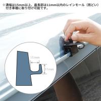 ※レインモール(雨どい)付き車種に取り付け可能です。目立ちにくく、収納しやすいコンパクトサイズ車に装着しても目立ちにくく、コンパクトに収納できるように、無駄を無くしたサイズに設計しています。レインモールに負担のかかりにくい設計レインモールの固定位置とフックの位置の距離をできるだけ短くする独自設計により、車のレインモールにかかる負担を軽減させています。