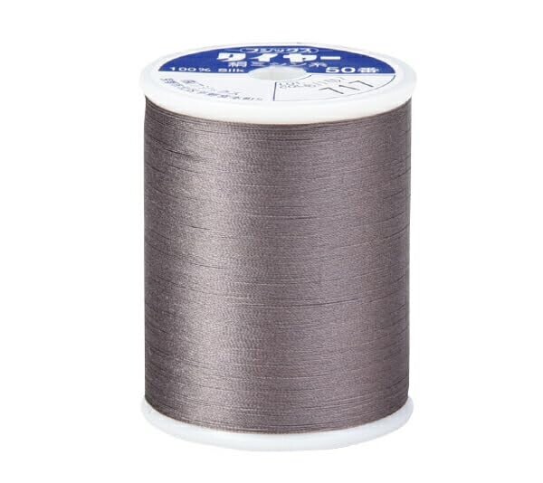 ミシン糸 『タイヤー絹ミシン糸 #50 800m 717番色』 Fujix フジックス絹100%の高級縫い糸です!絹は独特の美しい光沢と、しなやかな感触があり、滑らかで、弾力性に富んでいます。その天性の持ち味を活かし、縫いやすさと仕上がりの風合いを大切にした 高級縫い糸がタイヤーブランドの商品群です。ほどよい強さと、ほどよい伸びは、布地を傷めず、布地にまけないなじみ良さを備え、古くから、最も使いやすい 縫い糸として親しまれています。[ソーイング 手芸 洋裁 裁縫 絹糸 シルク ハンドメイド 茶系 グレー系]