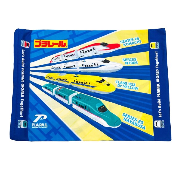 MORIPiLO 子供 枕カバー 低め プラレール 新幹線 ドクターイエロー こまち はやぶさ ブルー 約28x39cm用 肌にやさしい綿100生地 洗える グッズ キャラクター まくらのモリシタ