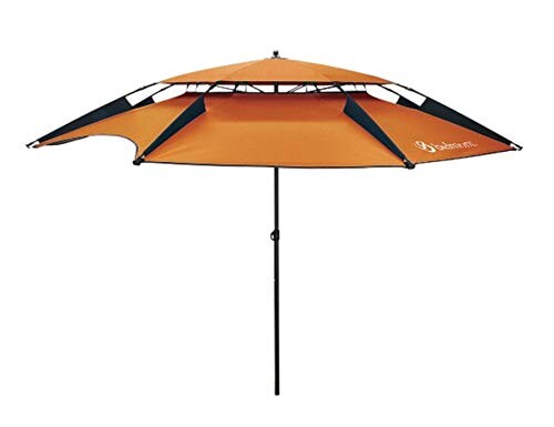 前面部がアーチ形状なので魚を寄せる時にも邪魔になりません。風を逃がすための風通し窓でパラソル内の気温を快適に保ちます。内側はUVカット加工しており、強い日差しなどから守ります。縫い目は水漏れ防止加工で水の進入を防ぎます。