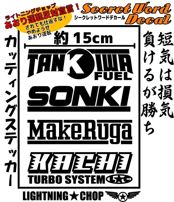 「短気は損気 負けるが勝ち」 シークレットワードデカール 横幅約15cmカッティングステッカー