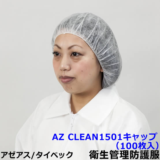 衛生管理 防護服 AZ CLEAN1501キャップ (100枚入) アゼアス 保護服 使い捨て 防塵服 食品工場 来客 見学 汚れ防止 続服