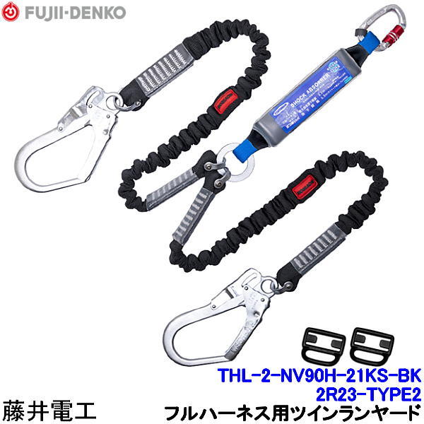 藤井電工 ツインランヤード THL-2-NV90H-21KS-BK-2R23-TYPE2 フルハーネス用 ダブル 安全帯 ツヨロン 墜落制止用器具 ベルト 高所作業