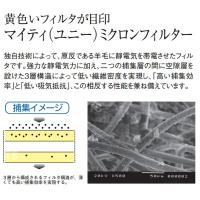 フィルターは、羊毛フェルトを基材として特殊な樹脂加工により帯電させた静電気力により粉じんを捕集するミクロンフィルター。
