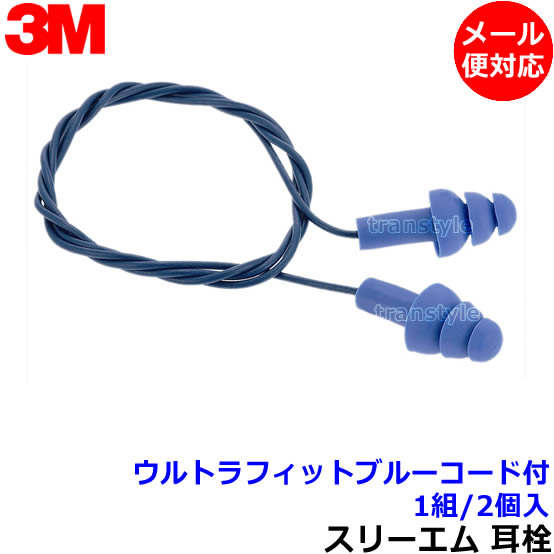 耳栓 3M ウルトラフィットブルーコード付 (1組) 金属球入り ひも付 340-4007 シリコン 正規品 スリーエム (遮音値25dB) 睡眠 聴覚過敏 騒音 防音 工場 メール便