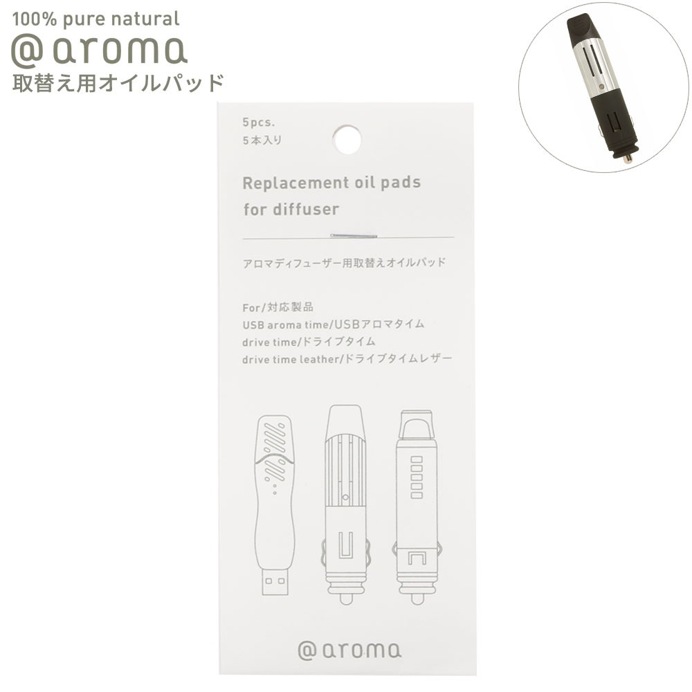| 心地よい車内空間で過ごすために。 ちょっとだけアロマの力を借りてみませんか?? ドライブタイム、ドライブタイムレザー、USBアロマタイムの交換用オイルパッド5枚入り。 [よりよく香りをお楽しみいただくために] 香りを変えるとき、オイルパッドが硬くなったり白くなったりした場合、交換がオススメです。(長時間ディフューザーを使用しなかった場合も、ご使用再開時にオイルパッドを交換してください) ※こちらは取替えオイルパッドのみの販売です。本体、アロマボトルは別途ご購入ください。 |