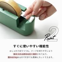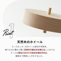 片手で簡単にカットできるテープカッター。テープを切りやすいように、指を入れる部分は広く設計されています。裏面には滑り止めが付いており重さも1kgあるため、使用時も動きにくくストレスフリー。天然木のホイール(太鼓)とかわいいカラーがデスクの上を華やかにしてくれます。 |
