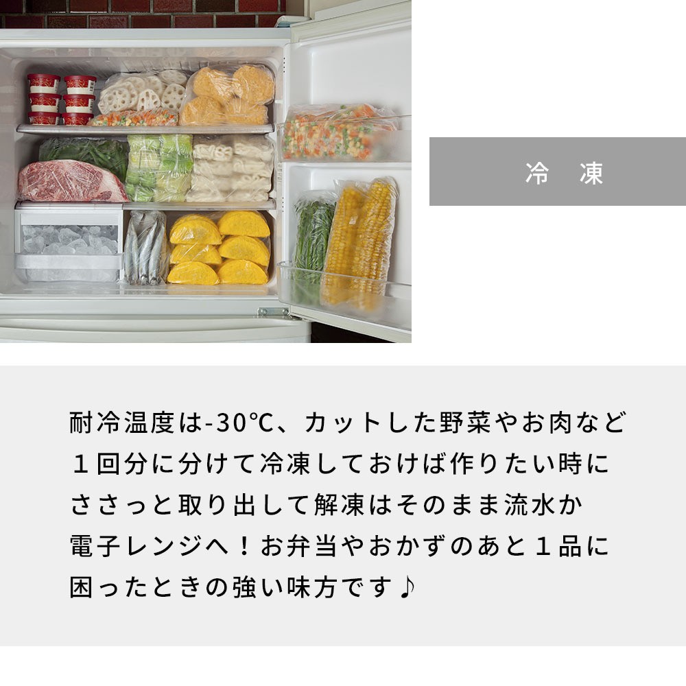 | 注 意 | *加熱時は120℃以上になると、破袋や溶融の危険性があります。 *油性の食品は加熱しないでください。 *アイラップ は、湯せんや電子レンジで「あたためができるポリ袋」として開発されたものであり加熱調理に対する保証はできません。 *湯せん時は鍋肌に袋がふれないように注意し、鍋底に必ず耐熱皿を敷いてください。パッケージに記載している注意書きをよく読んでご使用ください。 *モニターにより、色の見え方が実際の商品と異なる場合がございます。 *当店では、WEBの在庫と店頭の在庫を共有しております。迅速に対応はしておりますが完売してしまった場合ご用意出来ない場合もございます。予めご了承下さい。 | |