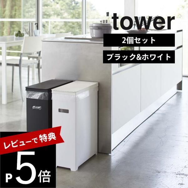 スリム蓋付きゴミ箱 タワー 2個組 |