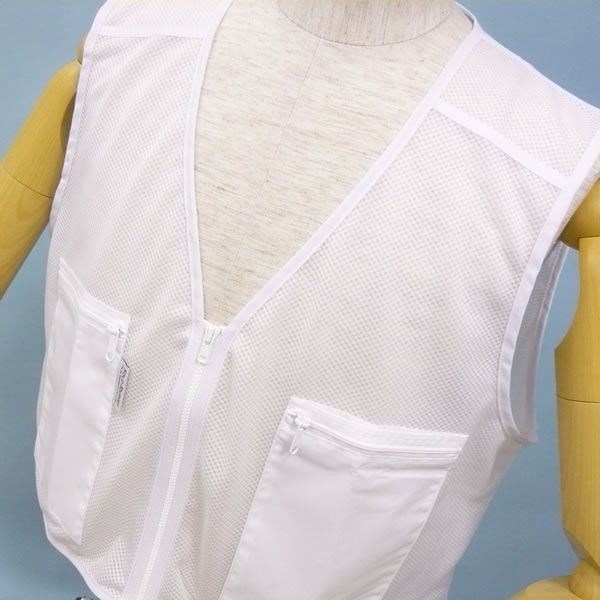 海外旅行中のパスポートや貴重品類の盗難、紛失を防ぐセキュリティ対策グッズ。3ヶ所のファスナーポケットが付いた男性用インナーベストです。下着のように、洋服の下に着用してしまえば自然な感じで貴重品を携帯できます。前面2ヶ所のファスナーポケットは、長めのエアーチケットや紙幣も折らずに収納できる大きさで、パスポートと現金を分けて入れられます。背面の横型ポケット(13cm×23cm)は大きめで3つ折のA4サイズが入ります。東レ社製の蒸散機能メッシュ生地を使用し、吸汗・蒸散機能によって、皮膚面はいつもサラッとします。