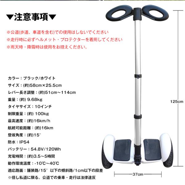 セグウェイ式車両 ハンドル付き 電動 バランス スクーター ホイール 10インチ ハンズフリー キックボード スケートボード Bluetooth LED ライト 送料無料
