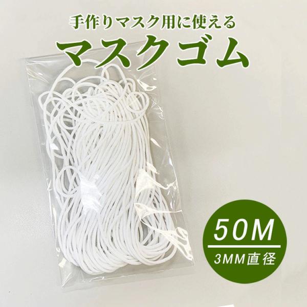 即納 当日発送 在庫ありマスク用ゴム紐マスク 手芸用品 送料無料 ふんわりやわらかタイプ マスクゴム 白 ホワイト 手作りマスク 約3MM×10M×5 50Mセット