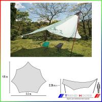 グループのベースキャンプに最適の大型タープで、6〜12 人での使用が可能です。人気モデル、アウトフィッターウィングのデザインを踏襲したユニークな7 ポイントは生地にテンションがかけやすく、強風下でも安定した設営が可能。また、天候に応じたアレンジがしやすいという特徴もあります。各ポイントにはガイラインを収納できるポケット付き。別売のアジャスタブルポールでアレンジも可能です。