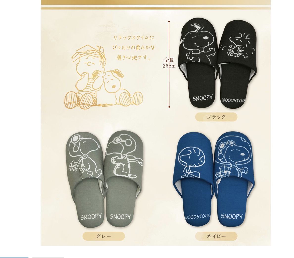 可愛らしいSNOOPYルームスリッパです。