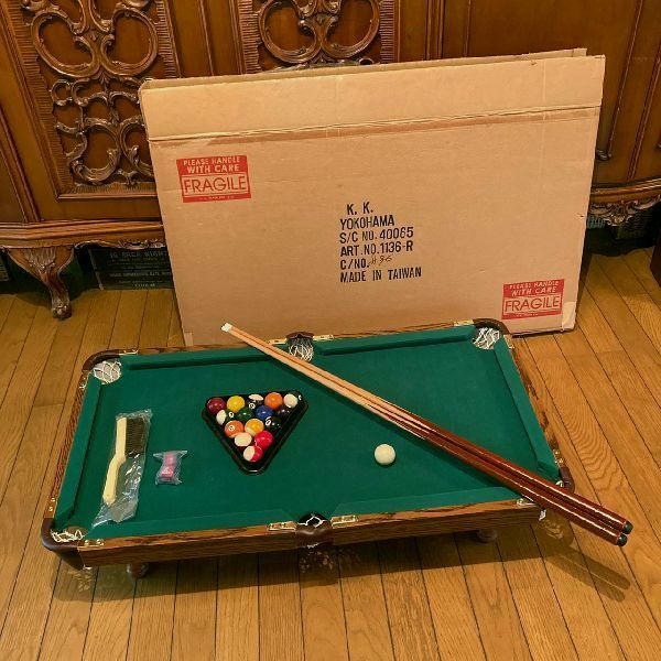 ≫未使用*家庭用 ミニ ビリヤード テーブル 台 91×49cm*キュー 2本 チョーク ボール ラック ブラシ セット*ポケット*ハスラー*お家 遊び