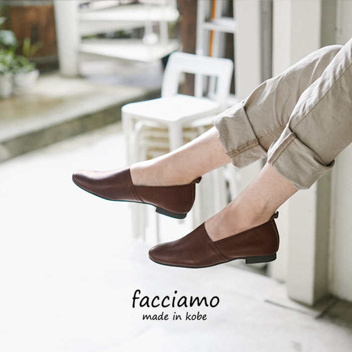 ファッチャーモ公式 フラットシューズ 黒 レディース 仕事 パンプス 甲浅 日本製 meringa メリンガ Lカット スリッポン シューズ 本革 ブラック facciamo