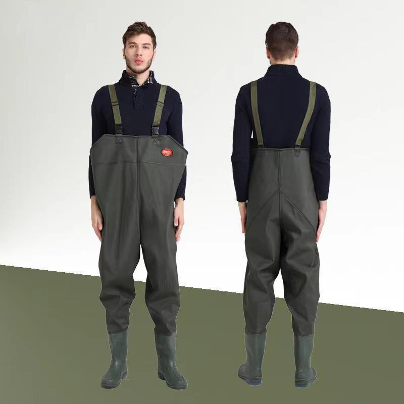 防水パンツ 胴長靴 釣り用長靴 長靴付き 長ぐつ付き つなぎ ハイウエスト 防水加工 メンズ 男性用
