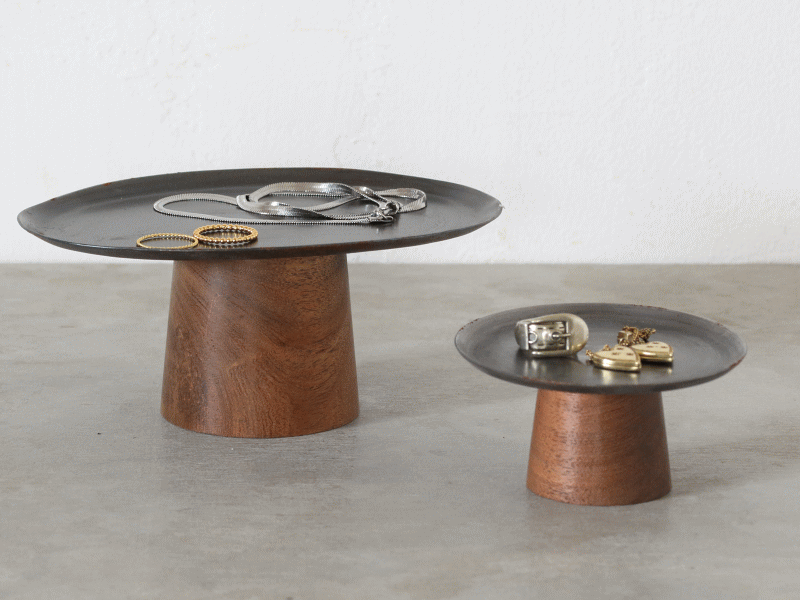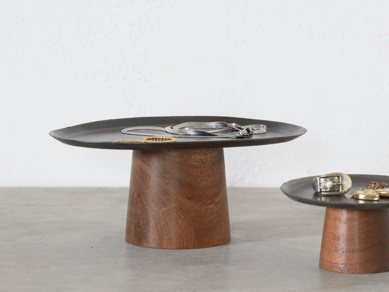木とアイアンの異素材を組み合わせて作ったコンポートトレー 職人さんが1つ1つ手作業で作っているので、微妙な個体差がありますが それもまた可愛い この組み合わせ、大好きです、温かみもあり、シャープでもあり