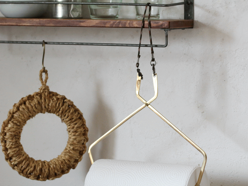 キッチンペーパーホルダー おしゃれ 吊り下げ ハンギング 真鍮 折りたたみ 携帯 アウトドア ペーパーハンガー