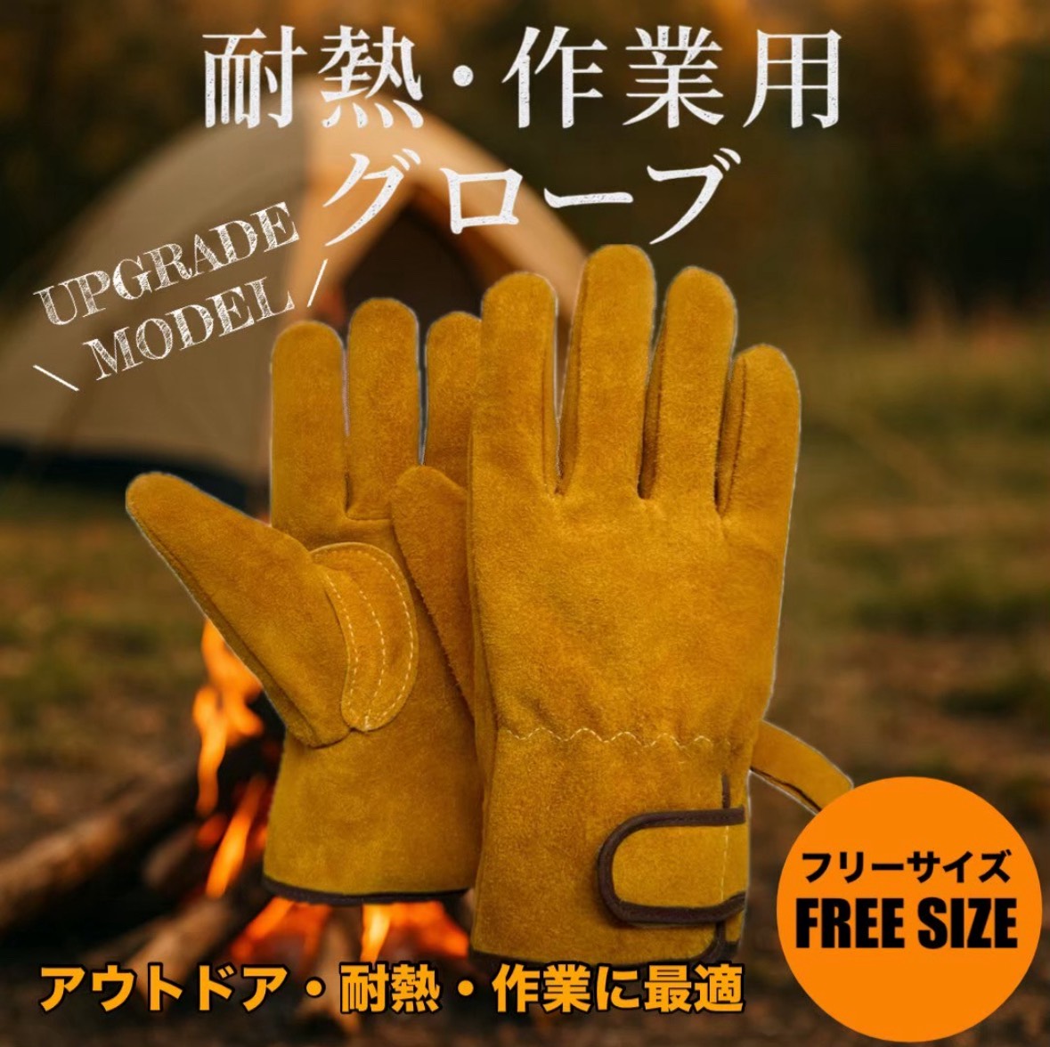 耐熱グローブ キャンプ 焚き火 バーベキュー アウトドア用耐熱手袋 臭いない 牛革 耐火 薪ストーブ 焚き火台 溶接 園芸用 作業用手袋 裏付き吸汗 高温耐性