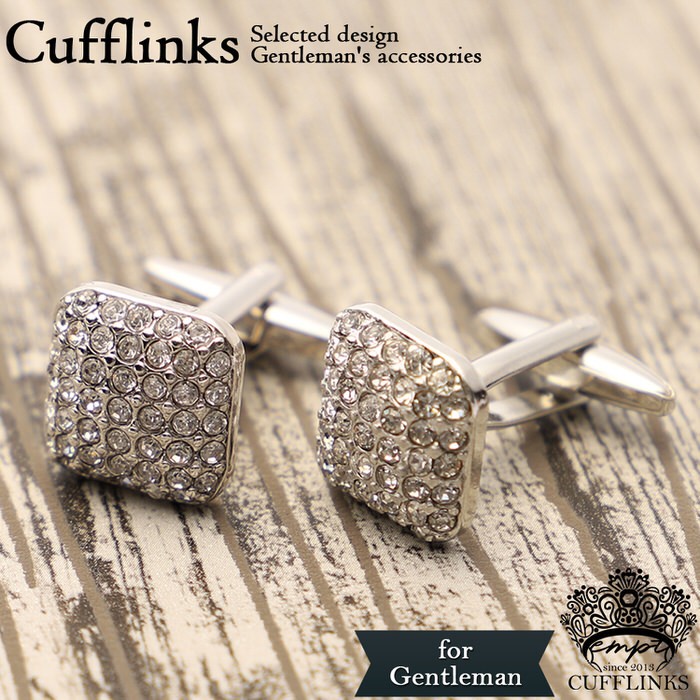 カフス スクエア カットストーン シルバー カフスボタン カフリンクス カフスリンクス カフス ラグジュアリー メンズ 付け方 結婚式 オシャレ 銀 ダンディ 豪華