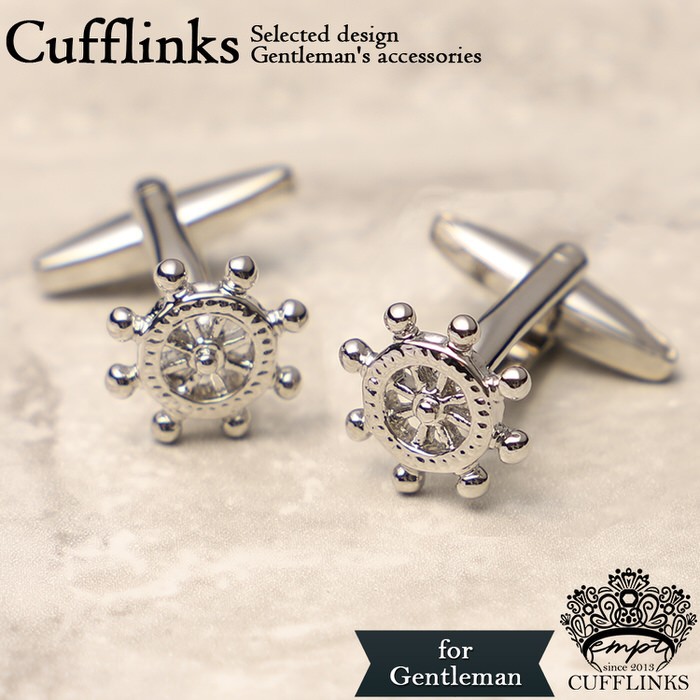 カフス 舵輪 ステアリングホイール シルバー カフスボタン カフリンクス カフスリンクス カフス 海 メンズ スーツ 結婚式 オシャレ シルバー 銀 船 乗り物 フォ