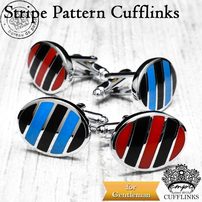 カフス サークル ストライプ カフスリンクス カフス カフスボタン カフリンクス ブラック メンズ 紳士小物 結婚式 ブルー レッド ストライプ