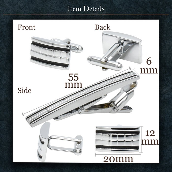 ■ 商品名 : カフス タイピン セット 銀黒 模様