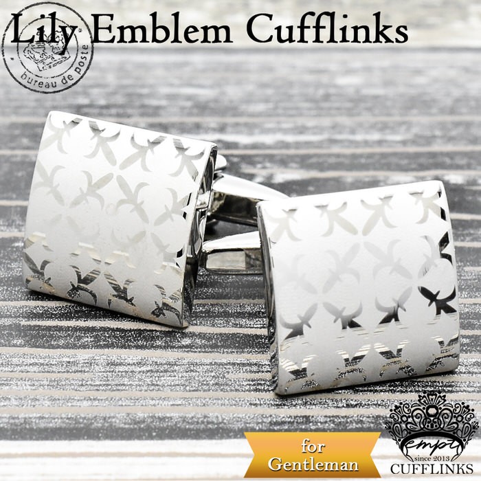 カフス 紋章 シルバー カフスボタン カフリンクス カフスリンクス カフス シンプル メンズ スーツ 結婚式 オシャレ 百合 銀 パターン フォーマル ビジネスマン