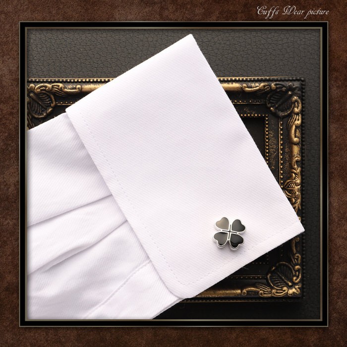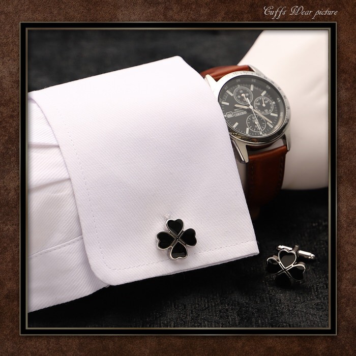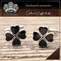 カフス 四葉のクローバー ブラック カフス カフスボタン カフリンクス カフスリンクス モチーフ メンズ シャツ 結婚式 かっこいい シルバー 銀 クローバー おも