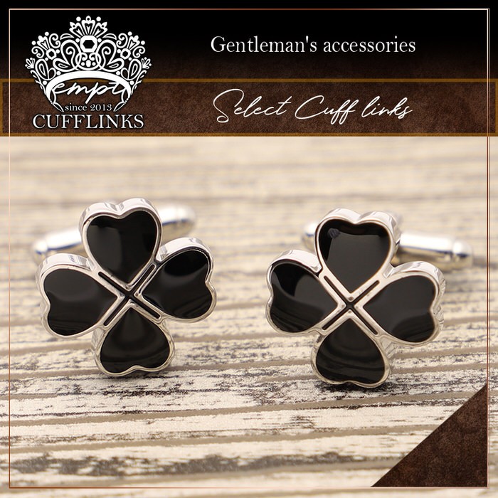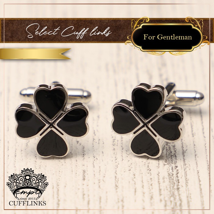 ■ 商品名 : カフス 四葉のクローバー ブラック