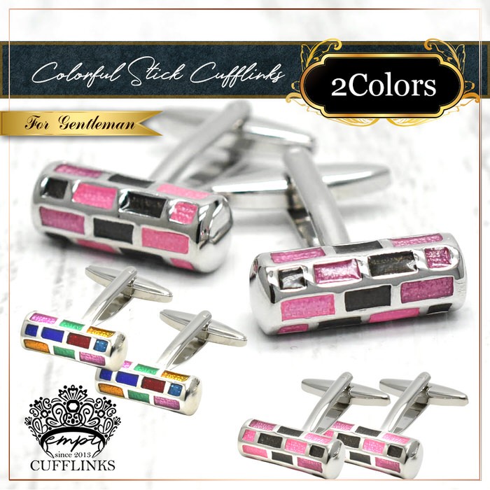 カフス スティック カフスボタン カフリンクス カフスリンクス カフス カラフル メンズ スーツ 結婚式 レインボー ピンク 七色