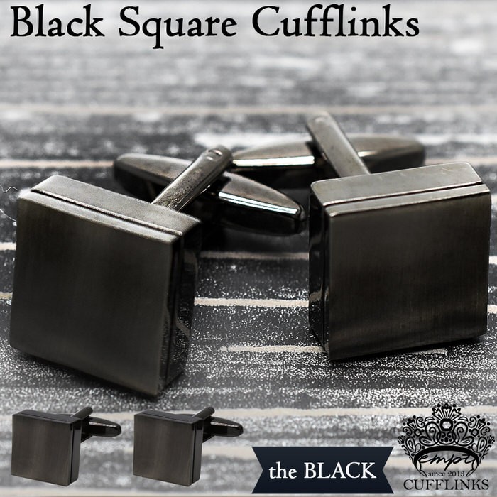 ブラック ブラッシュド スクエア カフス カフリンクス カフスリンクス カフス カフスボタン ヘアライン メンズ 使い方 結婚式 おしゃれ ブラック 黒 金属 フォー