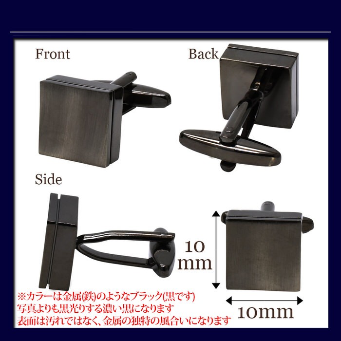 ■ 商品名 : ブラック ブラッシュド スクエア カフス