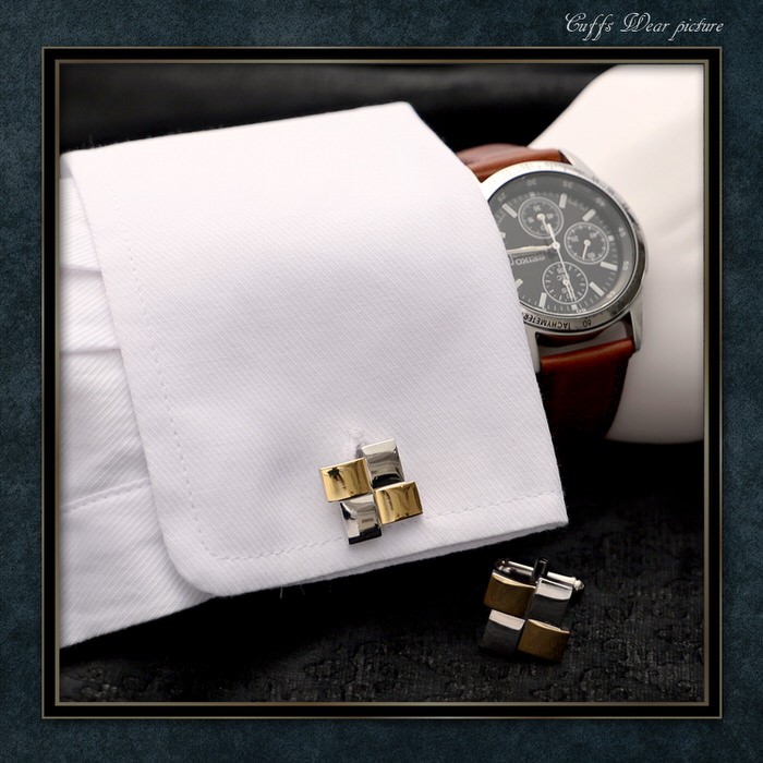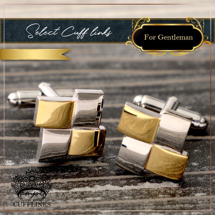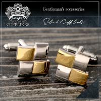 スクエア 四角 正方形 コンビ カフス シルバー 銀 & ゴールド 金 カフリンクス カフスリンクス カフス カフスボタン かっこいい メンズ 付け方 結婚式 おしゃ