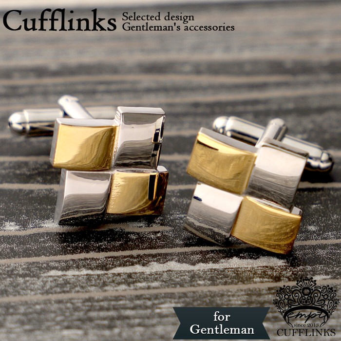 ■ 商品名 : スクエア 四角 正方形 コンビ カフス シルバー 銀 & ゴールド 金