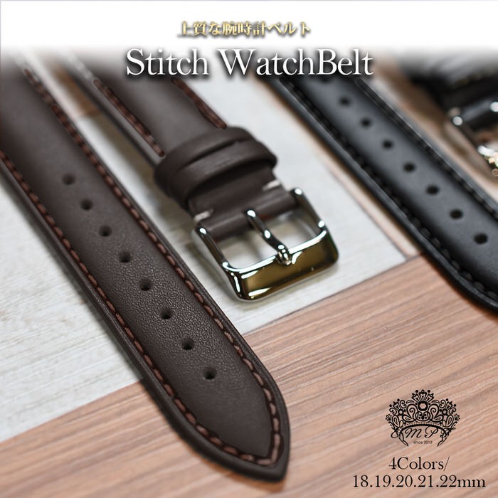 ■ 商品名 : 時計ベルト ステッチ 柄なし 革 レザー