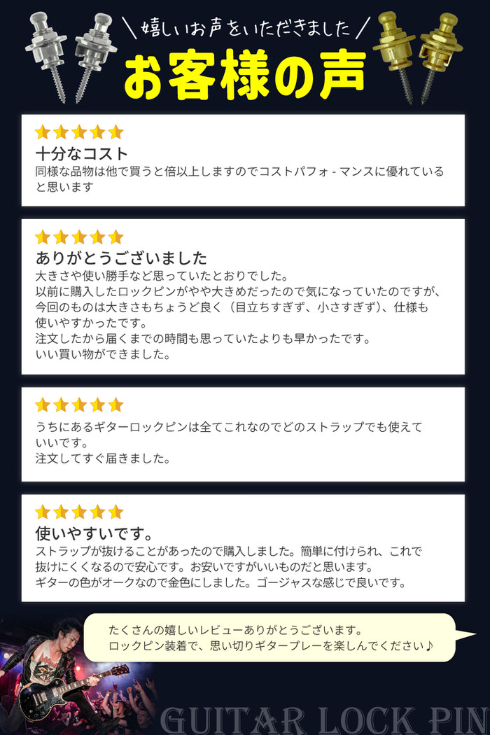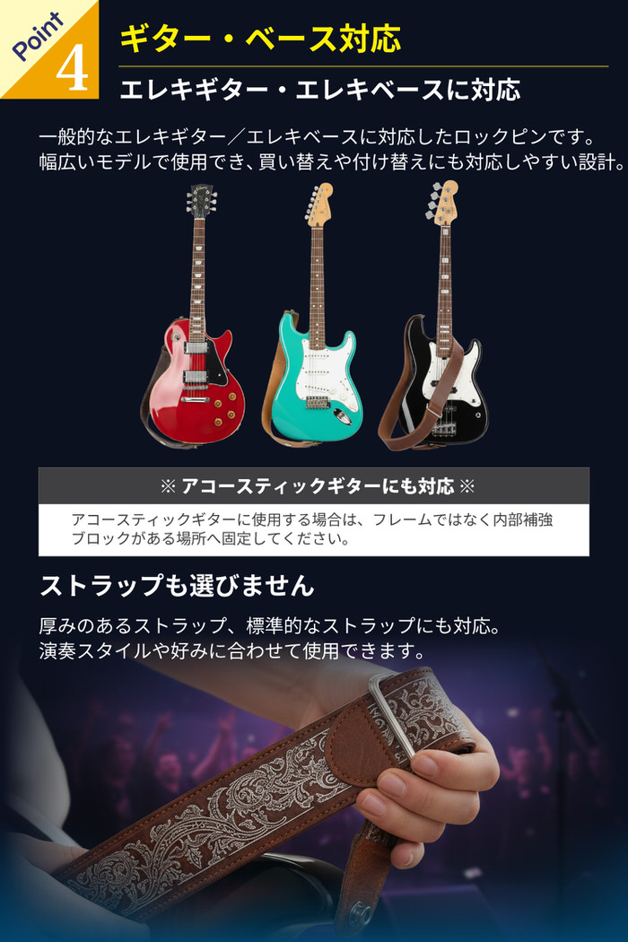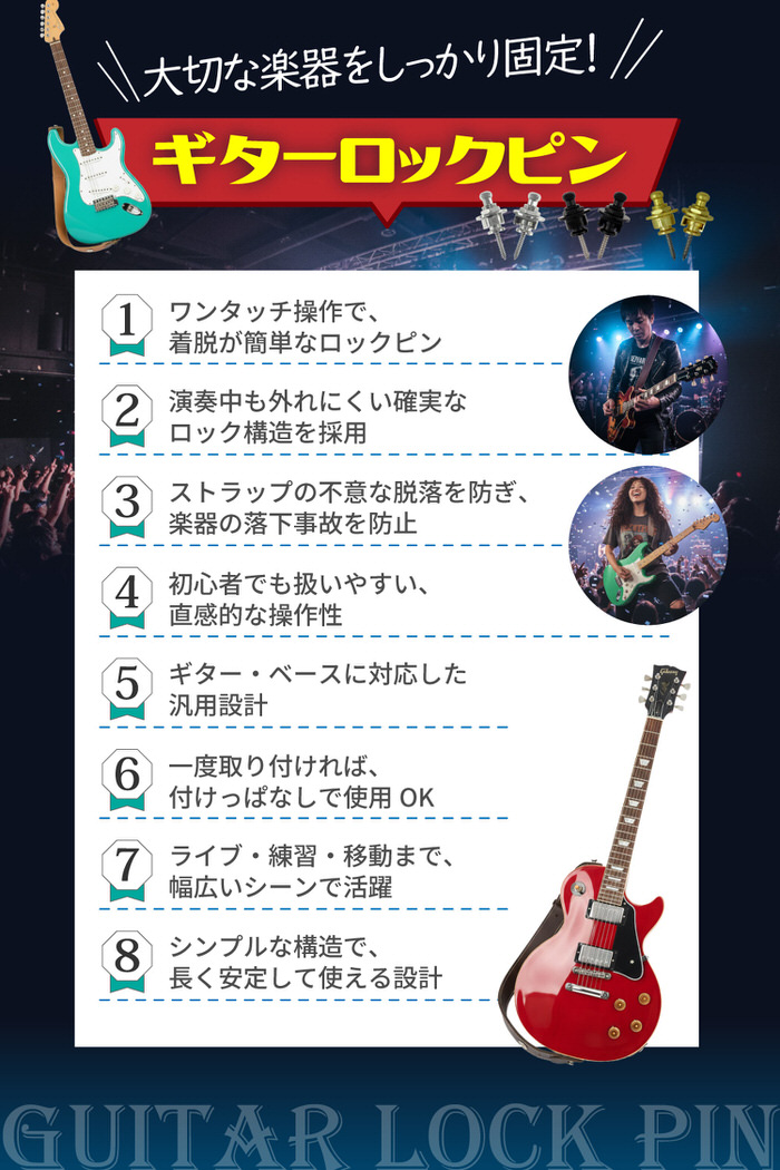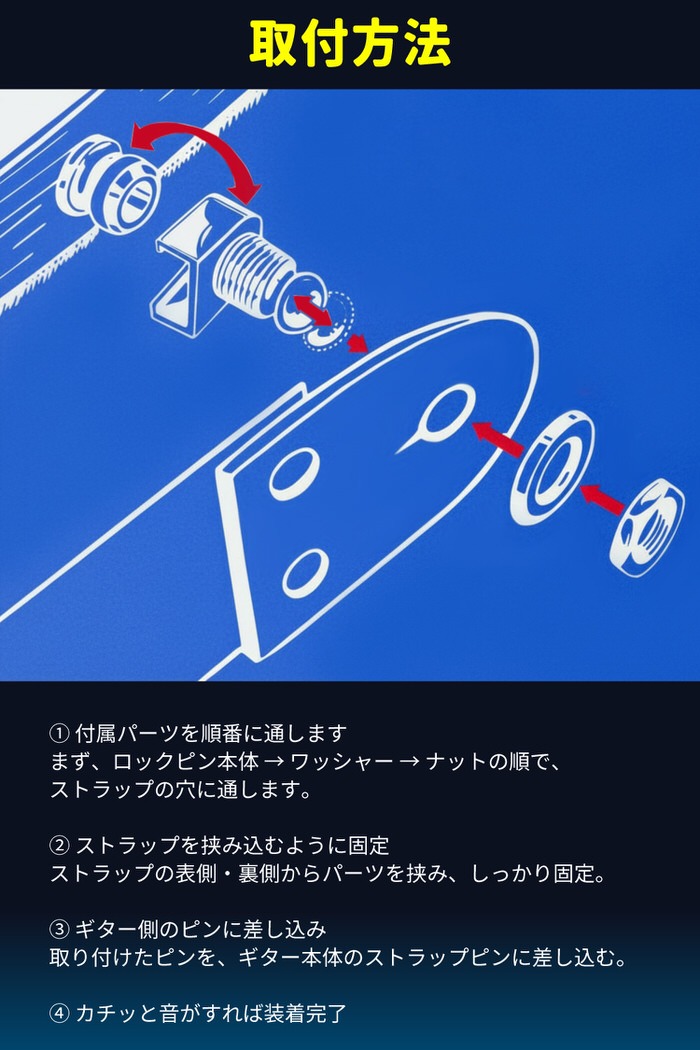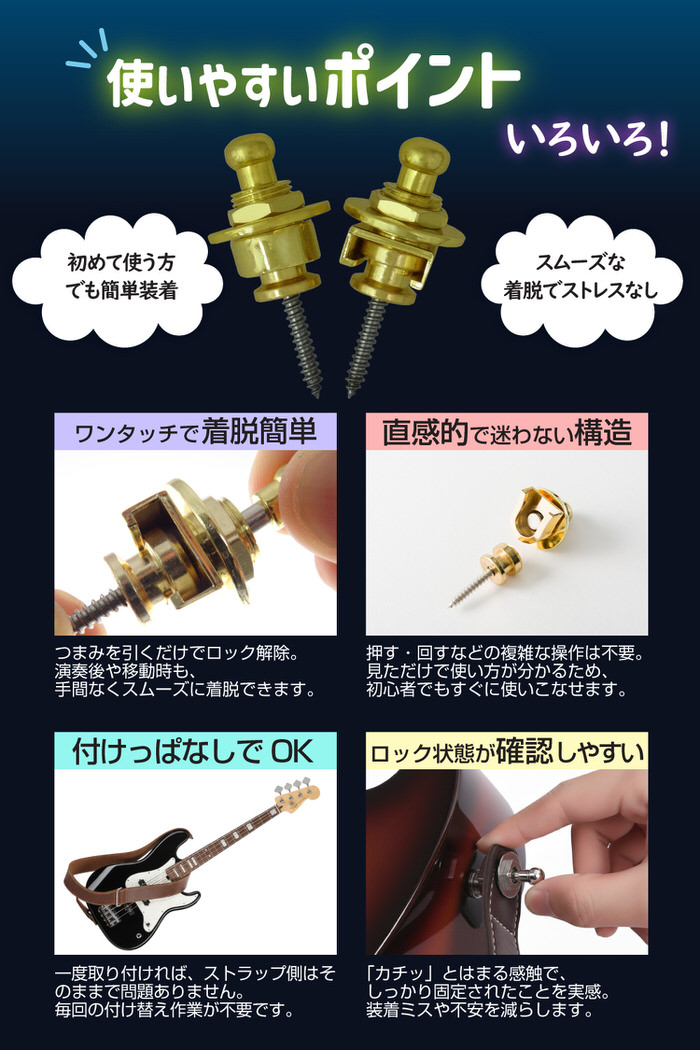 EMPT ギター ストラップ ロック ES-SP001 ロックピン ベース クリップロック ギターストラップ ストラップピン ピン