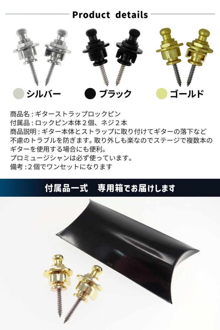 【 EMPT ギター ストラップ ロック ES-SP001 】 ギター ストラップ ロック ロックピン セキュリティーロックピン ストラップロックピン ロックピン ブラック クローム ゴールド ギター落下防止 ギターアクセサリー