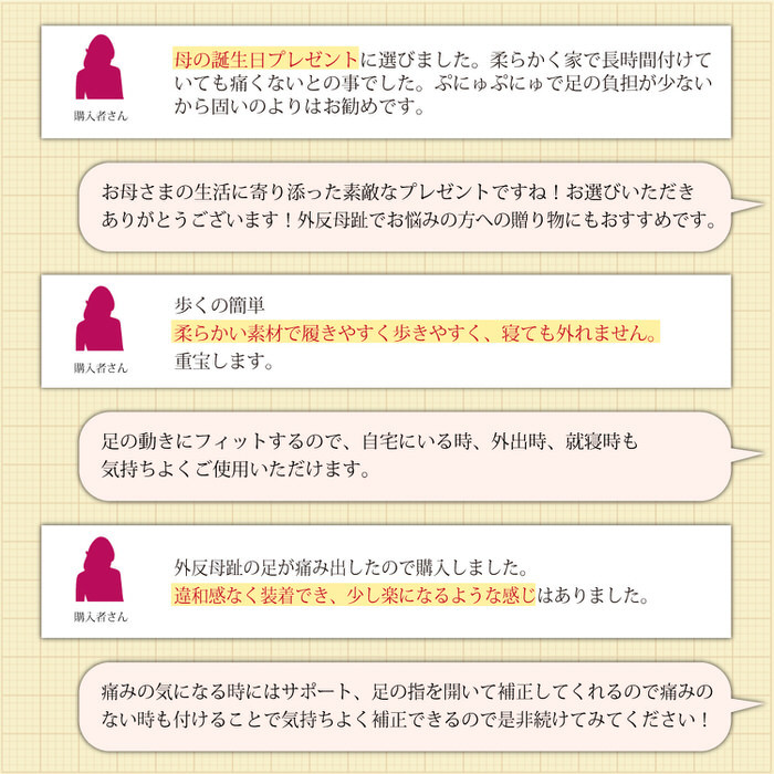 外側からの圧力を吸収し、歩行時の 痛み を 軽減、足指の バランス を 補正 。