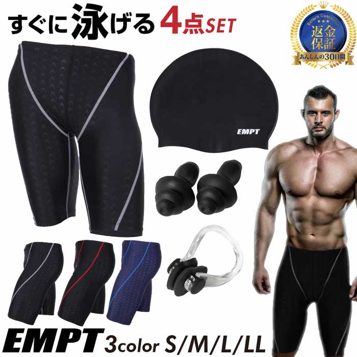 EMPT メンズ フィットネス 水着 キャップ 耳栓&鼻栓 セット