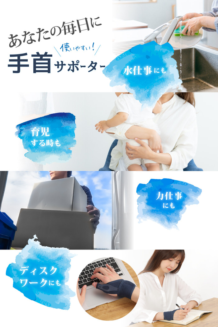 長時間のPC作業 スマホ操作 主婦 家事 赤ちゃん 抱っこ 育児 子育て 授乳 作業用 掃除 筋トレ スポーツ ゴルフ バドミントン 野球 ボーリング ピアノ 水作業 重い荷物を持つ作業 アウトドア 介護職 キーボード 寝るとき 就寝時 仕事 パソコン作業 パソコン