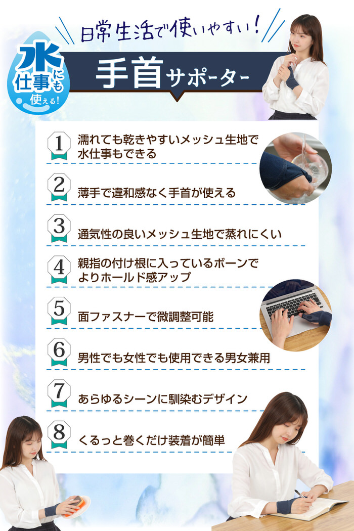 ■商品名:水仕事にも使えるメッシュの手首サポーター