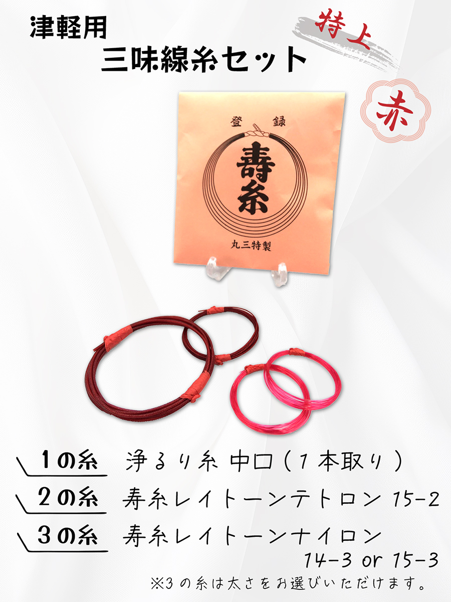 ≪特上糸セット≫【 津軽用 三味線糸セット (赤・特上) 2の糸テトロン 】