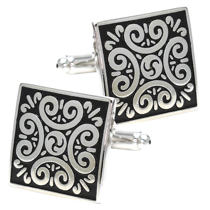 ■ 商品名 : カフス スクエア ブラック シルバー柄
