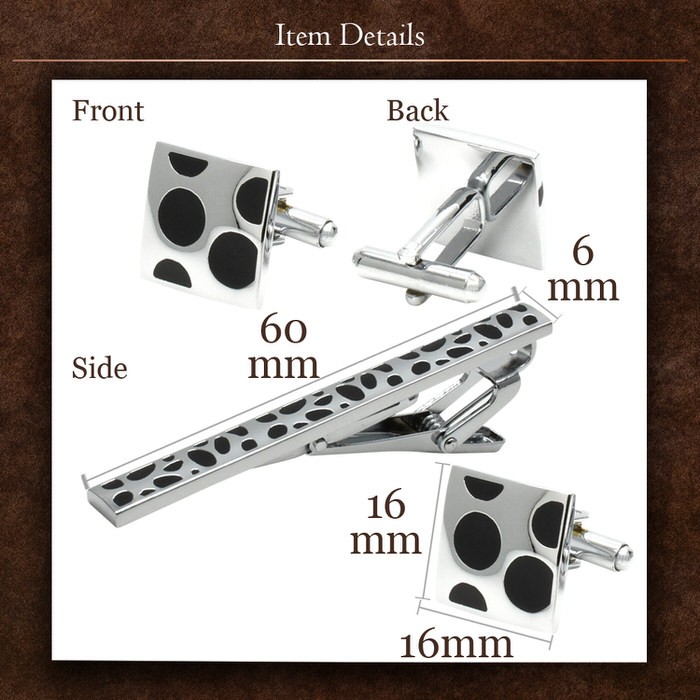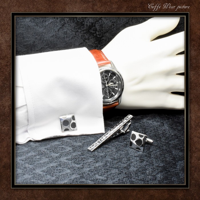 ■ 商品名 : カフス タイピン セット 銀黒 ドット 模様