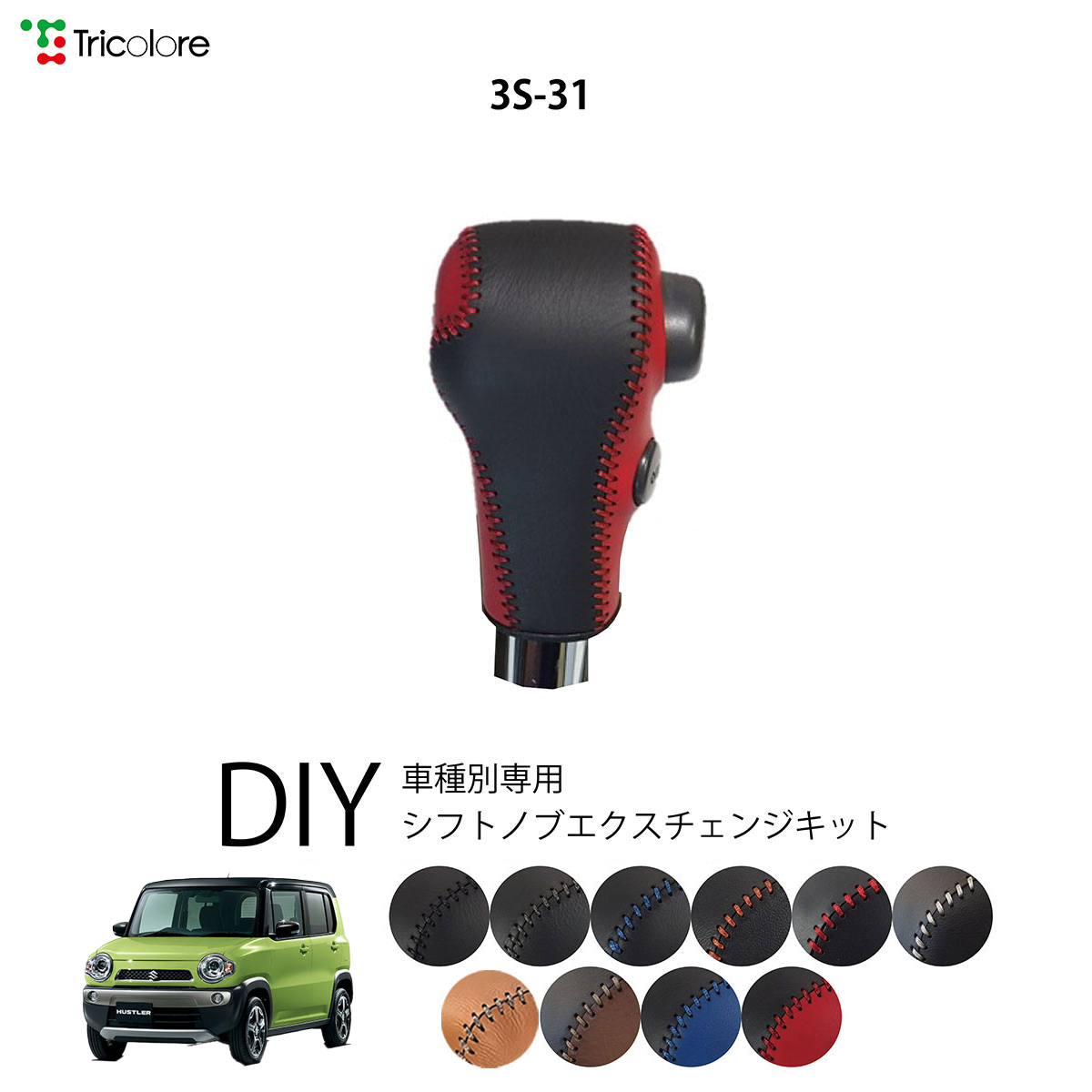 スズキ ハスラー MR31S/41S 専用 トリコローレ シフトノブエクスチェンジキット シフトノブカバー ギアノブ シフトレバー ノブカバー 本革