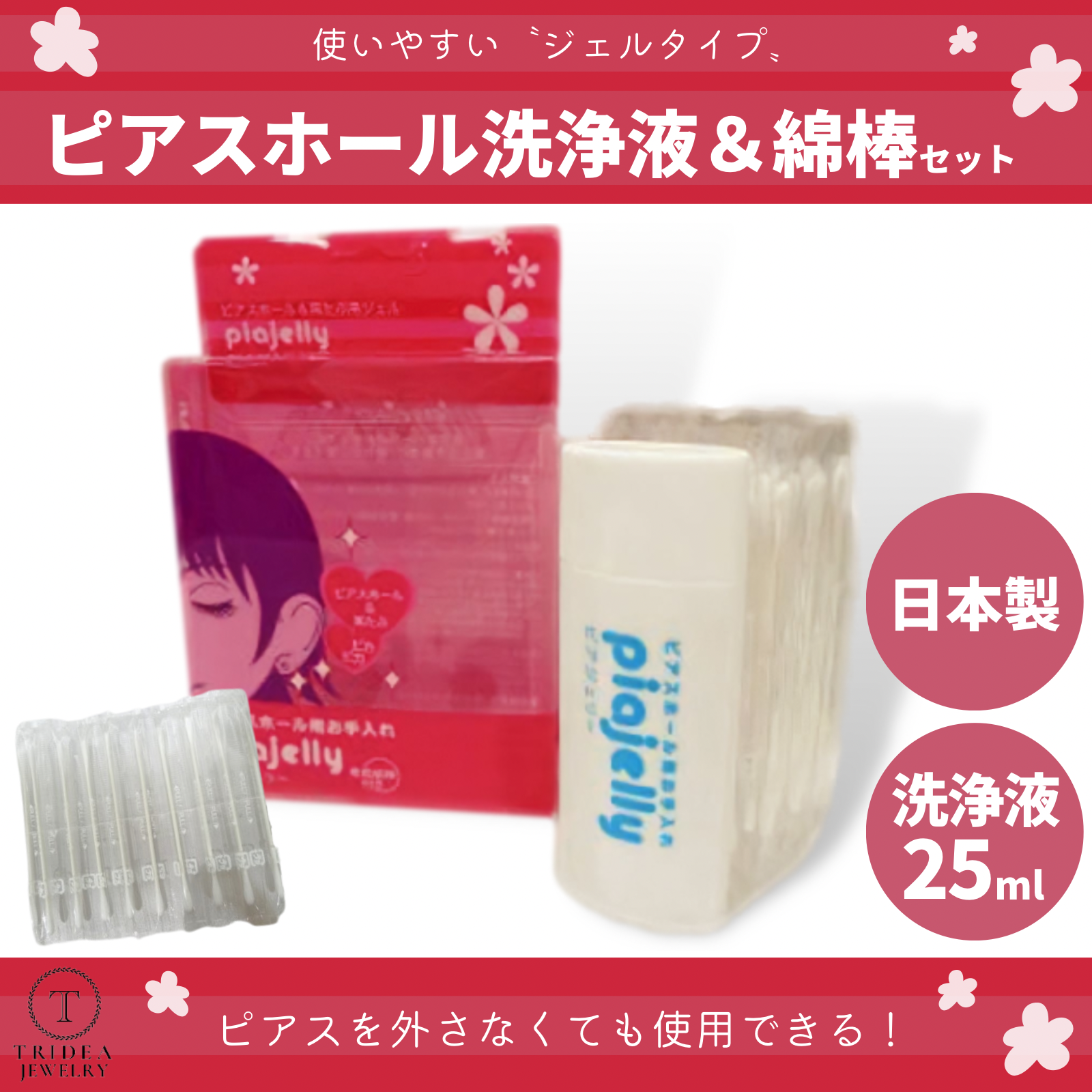 ピアジェリー ピアスホール 掃除 クリーナー 耳たぶ専用 お手入れ ジェル 専用清浄液 25ml 綿棒 30本入 日本製 汚れ落とし イヤケア 洗浄