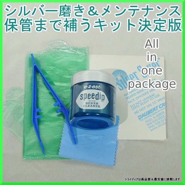 【内容】 スピーディップ80gシルバーメンテナンスキット(スピーディップ+ピンセット+銀専用ポリッシュクロス+シルセーブA4サイズ1枚分)