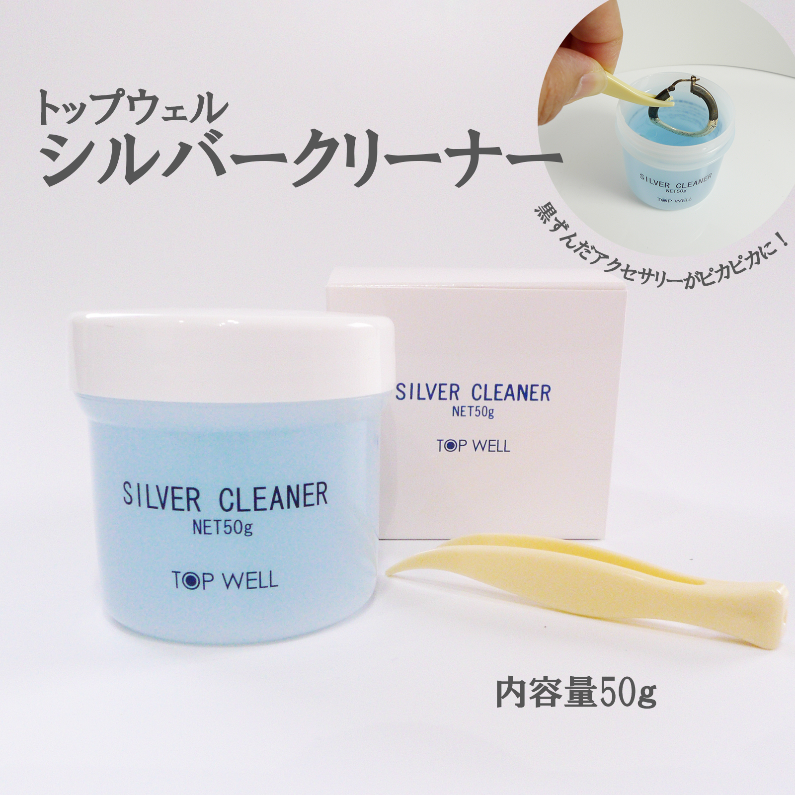 シルバークリーナー シルバー 銀用 50g 洗浄液 汚れ落とし ケア メンテナンス お手入れ ジュエリー磨き トップウェル ピンセット付 プレゼント ギフト